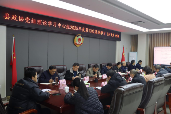 12月19日,太湖县政协党组理论学习中心组2025年度第13次集体学习(扩大)会议召开,中心组成员殷跃平、李传萍、占卓夫、石金印、李仁强、洪礼彬、查乐平、怀剑锋参加会议。