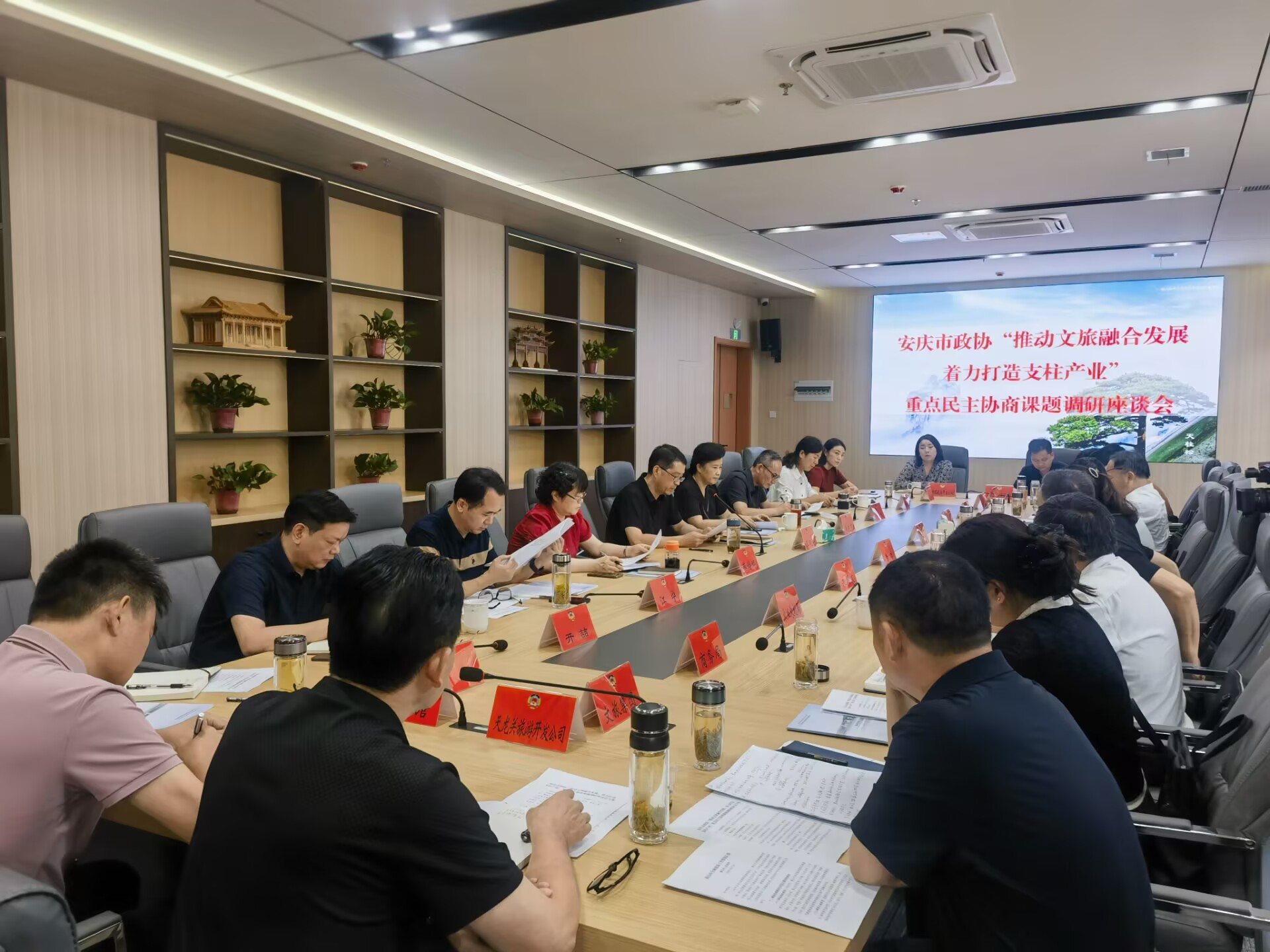 座谈会上,听取了潜山市打造全域旅游示范区有关情况介绍,并就丰富旅游业态、加强品牌打造、开发精品线路、人才队伍建设等内容与潜山市市直有关单位负责人、文旅企业代表等进行了深入交流,听取意见建议。