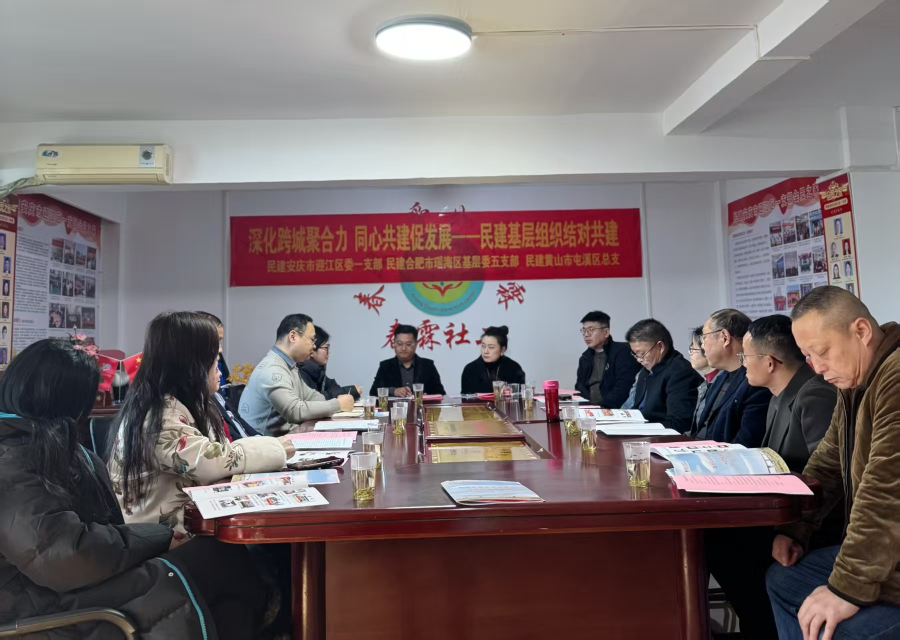12月16日,民建黄山市屯溪区总支、民建合肥市瑶海区基层委五支部与民建安庆市迎江区委一支部携手开展结对共建活动。民建安庆迎江区委会主委张时玲,副主委陈源芳、郭家义及各支部主委应邀出席,三地民建会员齐聚一堂,共话合作、共谋发展。