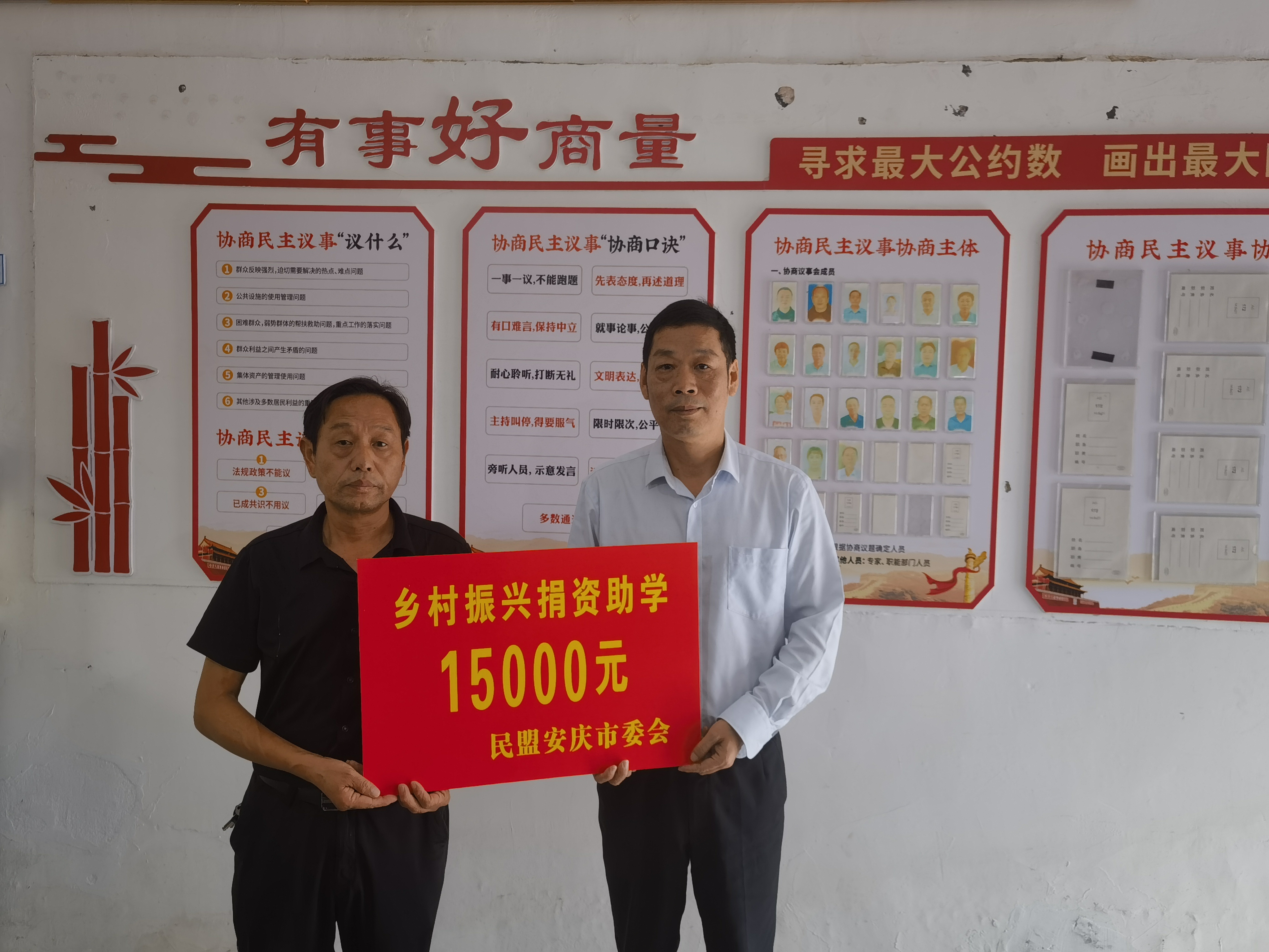 为扎实推进脱贫攻坚成果巩固与乡村振兴有效衔接,深入推进“农村教育烛光行动”,9月26日,民盟安庆市委会主委、安庆医药高等专科学校副校长毛以成率队赴望江县漳湖镇幸福村开展中秋节走访慰问活动,向该村15名贫困学生发放助学金1.5万元。民盟安庆市委会专职副主委杨洋及机关干部参与活动。