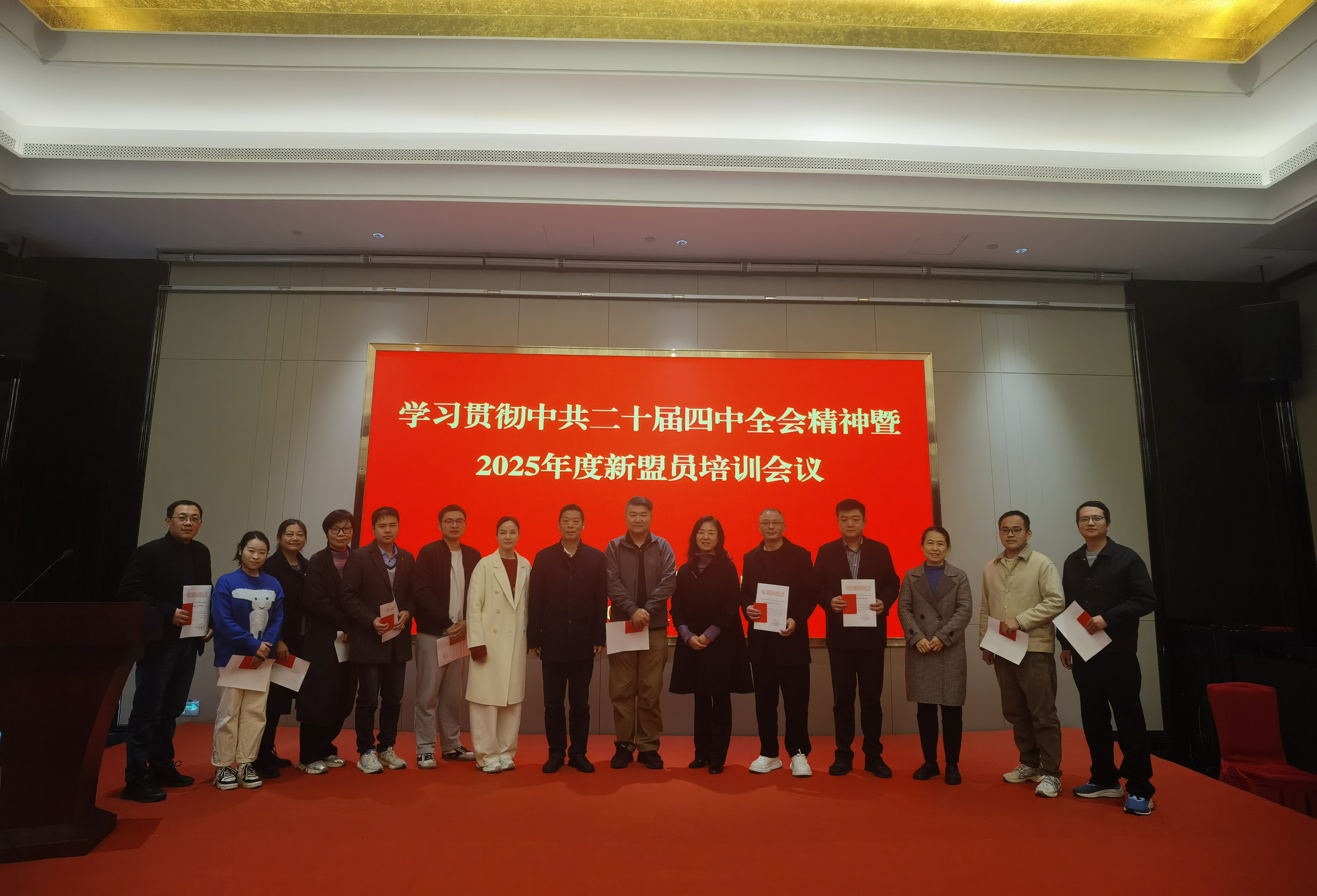 会上,毛以成主委围绕“共克时艰、共历风雨、共襄伟业、政治交接”等四个方面为大家讲解民盟盟史。他强调,新盟员要以此次培训为新起点,一要坚定政治立场,贯彻落实中共二十届四中全会精神,增进对中国特色社会主义的认同,与党中央保持高度一致。二要强化理论武装,认真学习民盟历史与传统,从专题片和老盟员经验中汲取力量、感悟担当,提升政治素养与理论水平。三要积极履职尽责,立足岗位发挥优势,围绕“十五五”规划积极调研建言,为安庆发展和民盟事业献智出力。随后,四位主委为新盟员颁发入盟通知书和盟员证,新老盟员依次作自我介绍。