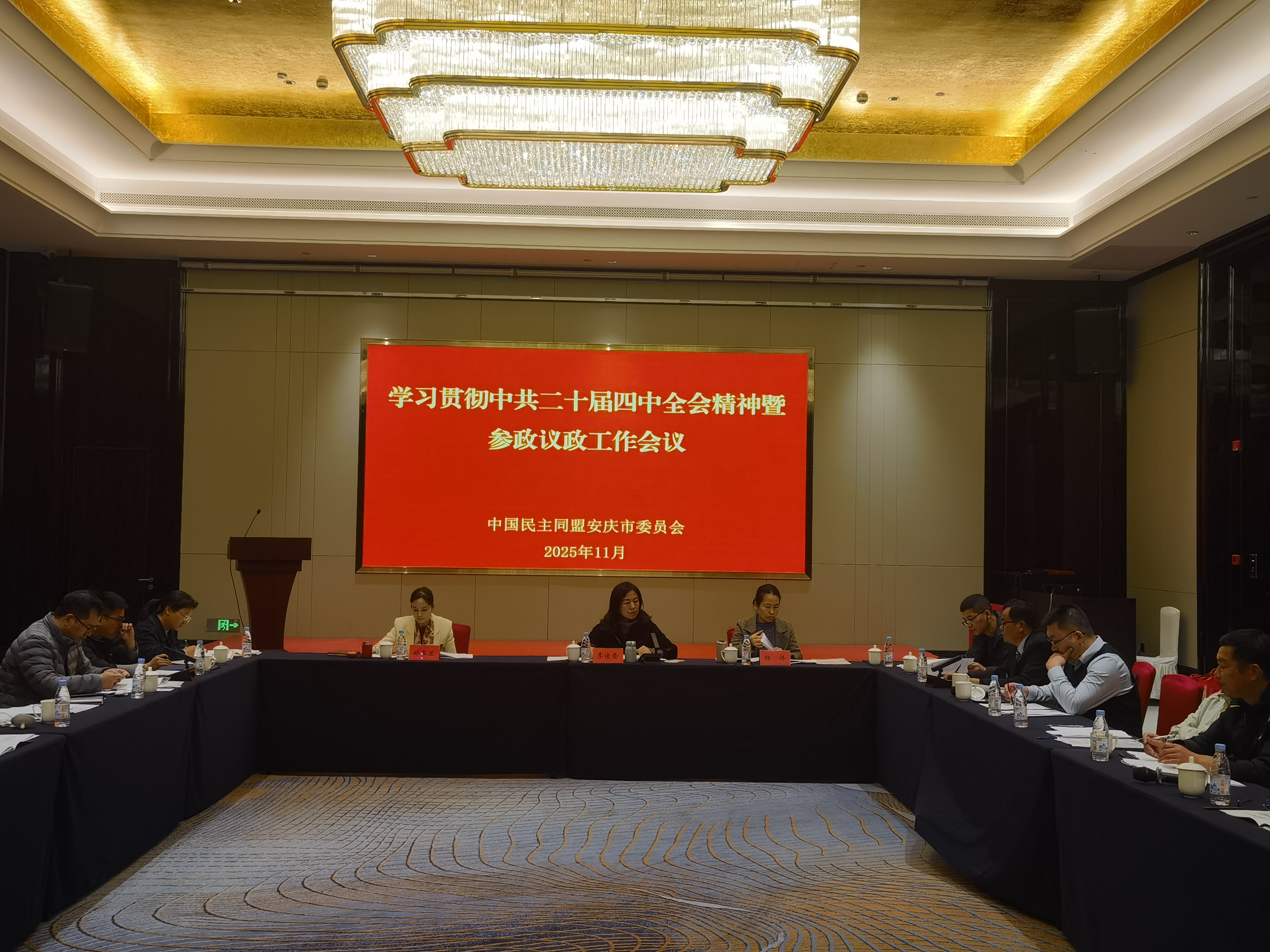 11月30日下午,民盟安庆市委会召开学习贯彻中共二十届四中全会精神暨参政议政工作会议。民盟安庆市委会副主委李佳莹主持会议,副主委杨洋、郑玉兰出席会议,参政议政骨干及机关干部职工参加会议。