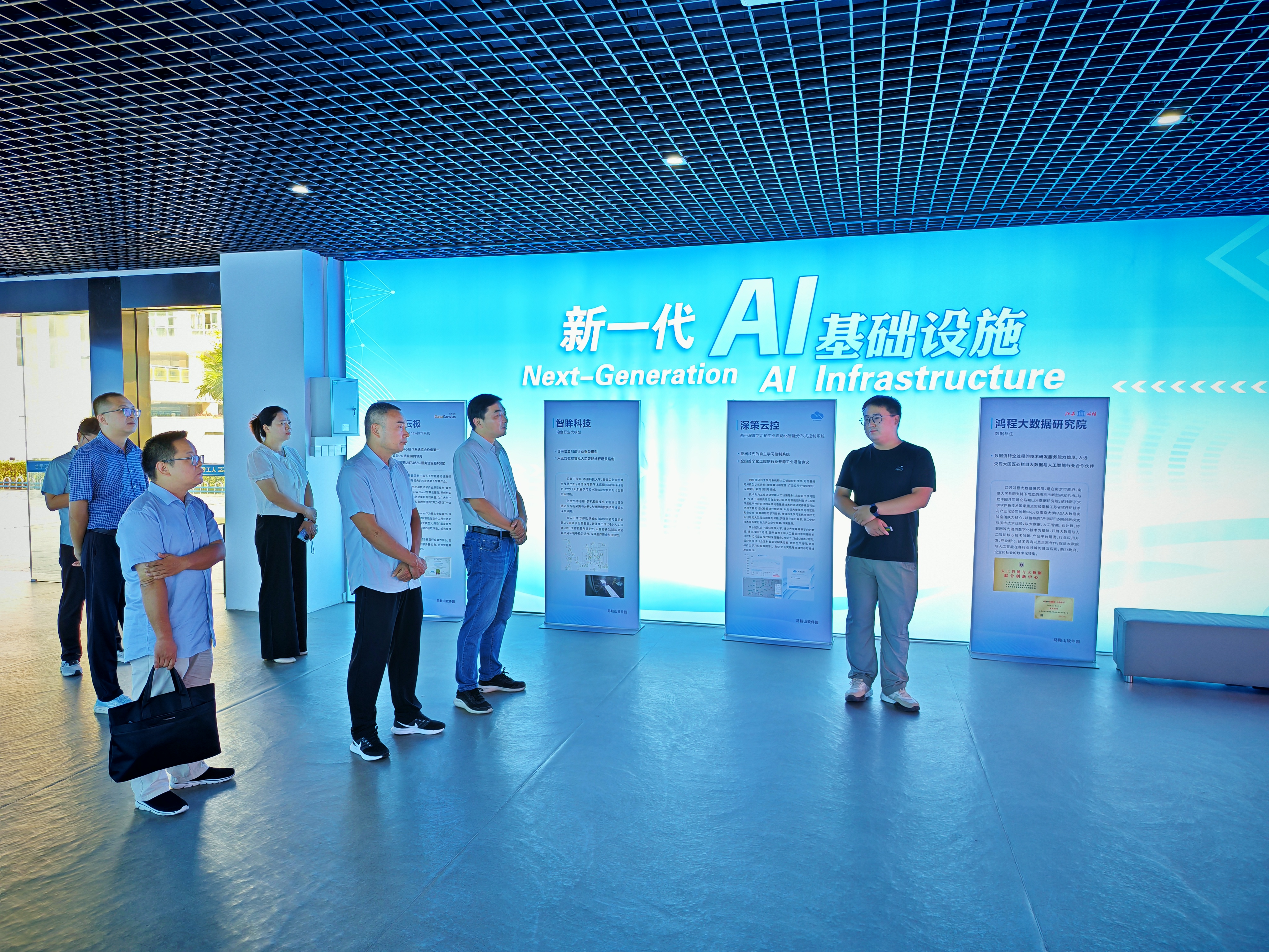 调研组前往马鞍山市花山区垂直行业AI大模型训练算力中心实地调研并与有关负责同志交流。该中心由花山区政府和北京九章云极科技有限公司、江东产投集团联合投资建设,是马鞍山市唯一大规模人工智能算力集群,首批投入3.3亿元,总体规划算力达1600P?!?P算力相当于每秒千万亿次计算能力,完成部署后相当于75万台个人电脑的算力总和?!毕钅扛涸鹑私樯?,该中心主要应用场景为各行各业大模型的构建,为政务决策、城市管理、民生服务等领域的智能应用开发提供底层算力支撑。
